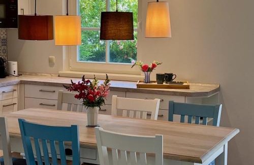Dünenhaus Strandlang is located in Neuhaus, just a 2-minute walk from Dierhagen Beach and 19 miles from Marina Warnemünde. This beachfront property offers access to a terrace and free private parking. Outdoor seating is also available at the vacation home. With free Wifi, this 3-bedroom vacation home features a flat-screen TV, a washing machine, and a fully equipped kitchen with a dishwasher and oven. Towels and bed linen are available in the vacation home. The accommodation has a fireplace. Guests at Dünenhaus Strandlang can enjoy cycling nearby, or make the most of the garden. Town Hall Rostock is 19 miles from the accommodation, while Rostock Museum of Cultural History is 20 miles from the property. Rostock-Laage Airport is 32 miles away.