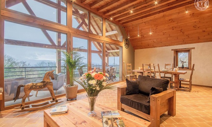 Gite in a house adjoining that of the owners, with independent access (3 steps) comprising an entrance hall, a living room-kitchen lounge area (Bluetooth speaker), 3 bedrooms (1 double bed 160x200 cm / 1 double bed 160x200 cm / 2 single beds 90x200 cm that can be combined into 1 double bed 180x200 cm), a bathroom (walk-in shower), separate WC (washbasin). Sheltered terrace 30 m². Electric vehicle charging socket (7.2 KWH). In the heart of a hilly countryside, this country house has been renovated with respect for an environmental approach that promotes the ecological qualities of the facilities and natural materials. The lime/hemp walls as well as the terracotta floor give the living room a pleasant country character. The 30 m² terrace benefits from a very beautiful open view of the countryside, a space fitted out for a lunch around the plancha or a moment of relaxation in the garden furniture.