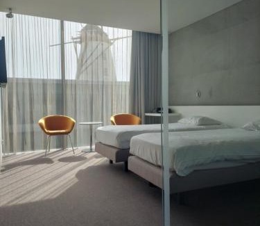 D-hotel is created around an old farmhouse and a protected windmill, dating back to 1841, and offers a unique combination of historical charm and futuristic design. Guests can enjoy free access to the fitness room. All the luxurious design rooms at the d-Hotel are provided with a flat-screen TV, free Wi-Fi access and maxibars instead of the usual mini-bars. The wellness center d-mixx includes 2 Finnish saunas, a hammam, relaxation spaces and a swim spa. There is also the d-relaxx center, which is open during summer and has an outdoor pool and a hot tub. The wellness center d-mixx is only open on thursdays, fridays and saturdays. Please pay attention when booking a Design room of Suite. The wellness center d-mixx is only open on Thursday (18 p.m-21 p.m.), Friday (17 p.m. - 21 p.m.) and Saturday (14 p.m. - 21 p.m.). Please pay attention when booking a Design room of Suite. Guests can have a drink in the inner courtyard or in the farmhouse, where you can also enjoy breakfast, made with fresh and traditional ingredients. If you would like to book a table in a restaurant in the area, d-hotel can give you recommendations. Kortrijk's historical city center is 1.6 mi away and the Kortrijk Xpo halls are a 5-minute drive from the hotel. Ypres is a 30-minute drive away.