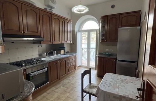 From the main road, the entrance gate allows you to enter in Da Zio Raffaele from there, a staircase of about 53 steps, alternating to the straight path, takes on a big and equipped terrace overlooking the sea, before entering in this unique property. This house is characterized for its structure, which it is the original one of the ancient country houses, where you could access the different areas preceding from room to room. Parallel to the internal distribution of the rooms, on the outside, a long balcony surrounding the sea side of the house. In first place, a gracious and warm well-equipped kitchen stands out for its earthy tones that make it a cozy and relaxing place; It follows the lovely dining room, that doubles as a living room, and two of the three double bedrooms: these two shares in common a bathroom with a big shower. At this point, one does not longer recognize the colors mentioned above but what stand out are the blue sea and white tones that make the rooms fresh, nice and pleasing to the eye during the stay. On the very end, the main double bedroom with an en-suite bathroom. From the staircase at the entry, not entering Da Zio Raffaele but continuing the descent, you can get to the small but very nice equipped platforms on the sea, equipped with staircase from which to dive.