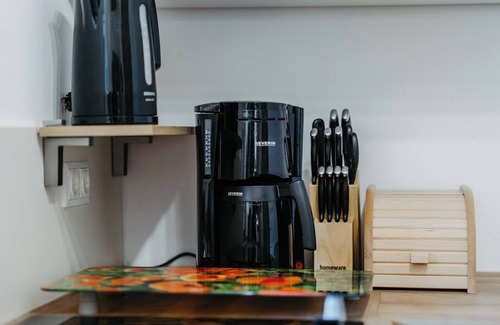 The kitchen is equipped with an oven, a stovetop, and a refrigerator, as well as a coffee maker, an electric kettle, and cookware. Bathroom amenities include a hair dryer, towels, and toilet paper. And because there's access to laundry facilities, you can go a bit lighter on your packing. Other amenities at this 1-bedroom, 1-bathroom rental include a dining area, bed sheets, bike storage, and heating.