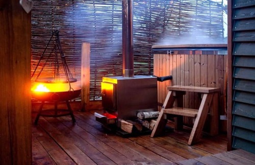 You have your own space, hot tub and fire pit and there is also a communal fire pit if you’d prefer to use that.