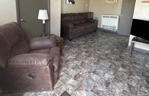Youve landed in Dakota territory! Come on in and cozy up in our newly remodeled cabin. It has 2 full beds,1 twin bed and living area with new couch and recliner! It is fully stocked with coffee and tea. This cabin has a mini fridge, microwave, coffee maker, air conditioning/heat, a full bathroom, shampoo/conditioner/soap, towels, linens and a smart TV to stream all of your favorite shows and movies! Make sure to like and follow our facebook page for updates and last minute openings! https://www.facebook.com/profile.php?id=61550591985610&mibextid=LQQJ4d