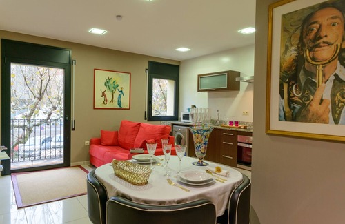 The apartment has a Salvador Dalí motif because of his relation to the building. It is a lovely apartment facing the main avenue.