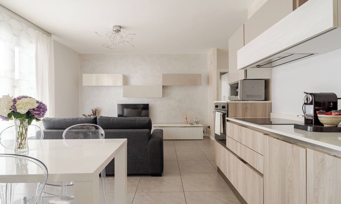 Spacious one bedroom apartment in a modern and elegant environment, modernly furnished with all the comforts of a suite (43 "Samsung Smart TV, Wi-Fi internet, hairdryer, Nespresso coffee machine and cappuccino, microwave, and a kitchen with all appliances) just a few steps from the center and only 50 meters from a supermarket, bar, greengrocer, baker and all the main services.