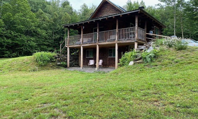 Rustic, off-grid, solar powered, 30 year old, log cabin with direct trail access for snowmobiles and 4-wheelers. Cabin sits on private 25 acres bordering NH state land. Located within a mile of downtown Pittsburg and Lake Francis. Sleeping loft is accessed by spiral staircase that has one full and 2 twin beds. Sleeper sofa on the main floor. Bath is also located on the main floor. Kitchen is well equipped. On-demand generator starts up automatically for those cloudy days if the solar batteries get depleted.