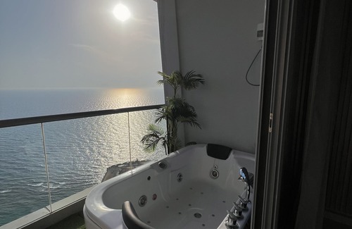 Welcome to your coastal haven! This apartment offers private balconies with breathtaking sea views in every room, complemented by a serene hot tub on the balcony and Smart TVs for entertainment. Indulge in the full kitchen for culinary delights, and unwind in the swimming pool, gym, and sauna. With famous attractions just moments away, your seaside retreat awaits!