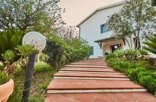 11-room villa 600 m2 on 2 levels. Very comfortable furnishings: large entrance hall. Exit to the garden. Living room with panoramic window with TV, flat screen, CD-player and DVD. 1 room with 1 bed and shower/bidet/WC. Large kitchen (5 hot plates, oven, dishwasher, toaster, kettle, microwave, freezer, electric coffee machine). Exit to the garden. Shower/bidet/WC. Upper floor: 3 double bedrooms, each room with shower/WC. Exit to the balcony. 2 rooms, each room with 1 bed and shower/bidet/WC. Exit to the balcony. 3 double bedrooms, each room with shower/bidet/WC. Facilities: washing machine, iron, children's high chair, hair dryer. Internet (WiFi). Please note: non-smoking house. Smoke alarm, fire extinguisher. IT088006B4BELPPFEC