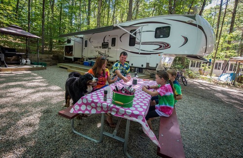 Recreational amenities at the campground include a seasonal outdoor pool.