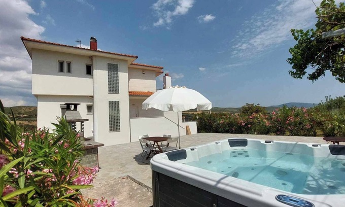 Spoil yourself in a spacious two-level (90+70sq.m.) luxury villa with spa and barbeque, in 7000sq.m. land, in Agios Antonios village (Thermi municipality), very close to vibrant Thessaloniki city and sea paradise of Halkidiki peninsula!