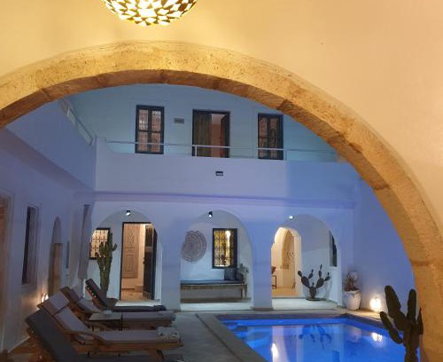 A good location for a relaxing stay in Houmt Souk, Dar Ennour Djerbahood Erriadh is a bed and breakfast surrounded by views of the city. The property features an outdoor swimming pool, free bikes, and parking on-site among other facilities. This bed and breakfast features air-conditioned accommodations with a patio. The accommodation provides a hot tub, free Wifi throughout the property, and family rooms. The units come with tiled floors and feature a fully equipped kitchen with a dishwasher, a dining area, a flat-screen TV with satellite channels, and a private bathroom with hot tub. A terrace with an outdoor dining area and garden views is offered in all units. At the bed and breakfast, all units include bed linen and towels. The bed and breakfast offers a buffet or continental breakfast. A mini-market is available at the bed and breakfast. You can play billiards at Dar Ennour Djerbahood Erriadh. Guests can also warm up near the outdoor fireplace after a day of walking tours. Djerba Golf Club is 12 miles from the accommodation, while Lalla Hadria Museum is 13 miles away. Djerba–Zarzis International Airport is 6.8 miles from the property.