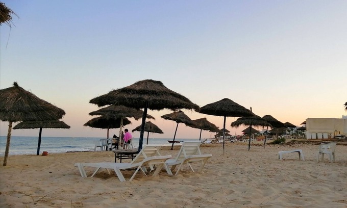 Located 5 minutes from the beach in one of the most beautiful cities of Cape Bon Tazarka, 15 minutes from Hammamet, 1 hour from Tunis Carthage Airport. The apartment is air conditioned, furnished, with TV and a hob, a fridge, a bath heater, with a balcony and a terrace, the city is quiet and all types of supermarkets, restaurants, souks, exist near the apartment. Check in is possible all day long if the apartment is available ....