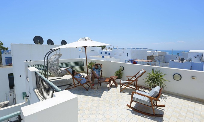 - CASA BLANCA with these two beautiful terraces, (one decorated in ceramic and another equipped with a Barbecue,) close to the tourist area hammamet center.