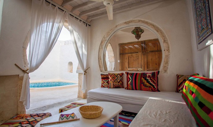 Best-rates for the Dar Nejma - Djerbahood starts from $189 per night with includes Security/Safety, Child Friendly, Internet, Laundry, Air Conditioner, Parking, Pet Friendly, Pool, Bedding/Linens, Kitchen with all other amenities. Perfect for Weddings is committed to ensuring every guest experiences a comfortable and extraordinary stay, whether planning a romantic getaway, a honeymoon, a pet-friendly stay, or celebrating with the entire wedding party.