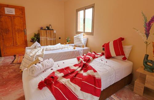 Providing quiet street views, Dar Tamatert in Tamatert offers accommodations and a shared lounge. With river views, this accommodation features a balcony. The guest house provides mountain views, a sun terrace, a 24-hour front desk, and free Wifi is available throughout the property. At the guest house, each unit is equipped with a wardrobe. Each room is equipped with a private bathroom with a walk-in shower, slippers, and a hair dryer. Guests at the guest house can enjoy a vegetarian breakfast, and breakfast in the room is also available. A mini-market is available at the guest house. If you'd like to discover the area, cycling is possible in the surrounding area, and Dar Tamatert can arrange a bicycle rental service. Takerkoust Barage Marrakech is 29 miles from the accommodation. Marrakech-Menara Airport is 40 miles away, and the property offers a paid airport shuttle service.