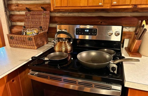 Unmatched Ambiance: Enjoy the charm of a handcrafted log cabin with modern comforts in a peaceful, private setting.