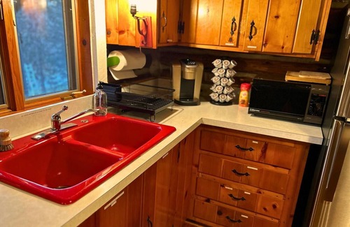 Denton Hill Hideaway features two cozy bedrooms and a full bathroom, all conveniently located on the main level. Whether you’re planning a weekend getaway or a longer stay, the cabin is equipped with an on-site washer and dryer for added convenience. Traveling with little ones? A pack 'n play is provided to ensure everyone sleeps comfortably. Plus, furry friends are always welcome here—because your pets are family too!