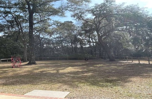 The cottage features three beautifully appointed bedrooms and 2.5 baths, providing ample space for your wedding party and guests. Enjoy exclusive access to the fully fenced backyard, perfect for outdoor gatherings or post-ceremony relaxation beneath majestic live oaks. Delight in the conveniences of home with a fully equipped kitchen, cozy living areas, and an additional adjoining apartment available upon request for extra accommodation needs. Your furry friends are welcome too, with a designated "dog room" designed for their comfort, ensuring that no one is left out of the celebration.