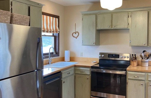 The home boasts a comfortable living area where you can unwind, along with a well-appointed kitchen and dining space, ensuring that your guests feel right at home. Enjoy evenings on the back patio with a gas grill and fire pit, perfect for toasting marshmallows after a long day of festivities. The layout accommodates families wonderfully, with two bedrooms on the upper level and a lower-level bedroom for extra privacy. Plus, the option to bring along a well-behaved dog means no one in your family has to be left behind during the celebration!