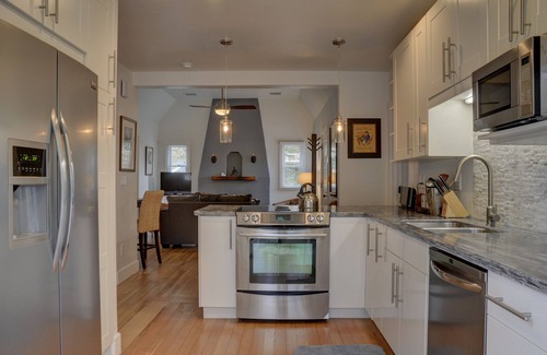 NEWLY REMODELED FROM HEAD TO TOE! You will absolutely fall in love with this historic 2 bedroom, one and one-half bath charmer! Plus a private den provides a lounge space or and extra bedroom. This 1200 sf home has been completely remodeled from top to bottom. Custom kitchen with stainless appliances, hardwood floors, central heating and cooling. This historic home has a park-like setting with total backyard privacy right downtown! Fully furnished and appointed with everything you need for a spoiling stay. Just take off your shoes and relax . . . Or . . . Walk just two blocks to downtown prescott and enjoy wonderful restaurants, museums, art galleries, bars and entertainment on the famous whiskey row.