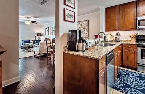 Beautiful! 2 Bedroom 2 Bath Condo! Sleeps up to 5 people located at Old Taylor Place Condominiums on Old Taylor Road, within walking distance of the stadiums and THE GROVE! Each bedroom sleeps 2 and has its own bathroom. Additionally, the living room sofa is a queen size sleeper. Our kitchen is fully equipped and the extra spacious patio features a CharBroil Infrared grill and beautiful view of the rolling lawn and common activities space.