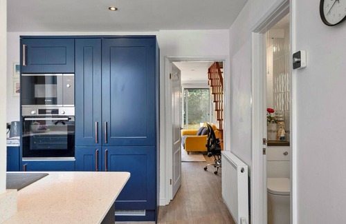 On the ground floor, the well-equipped kitchen, fitted with an oven, hob, fridge/freezer, microwave, washing machine and tumble dryer ensures an easy self-catered stay. Take it easy in the lounge with garden views, flame glass fronted fire, a large Smart TV, WiFi, sofa seating, and a dining table. Downstairs, you'll also find a convenient WC.