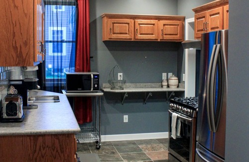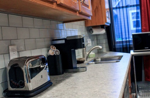 Main level 1 bed, 1 bath apartment in a duplex. The unit has been completely renovated, all finishes and furnishings are new. Upgraded appliances, very clean and comfortable, it’s perfect if you re looking for something nicer but still affordable. The only shared space is the laundry. Traveling with some people but don t want to stay in the same unit, you rent the top, put the others in the lower level, you ll have the whole place. See my other listing for details on the other unit in this building.