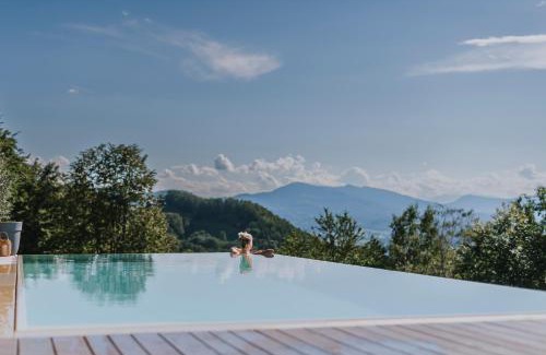 Das Hundert am Eichberg, Südsteiermark is a recently renovated vacation home in Sankt Johann im Saggautal where guests can make the most of its infinity pool, garden, and bar. This vacation home features air-conditioned accommodations with a balcony. There's a picnic area and guests have access to free Wifi, free private parking, and an electric vehicle charging station. Featuring a terrace and mountain views, the spacious vacation home includes 2 bedrooms, a living room, satellite flat-screen TV, an equipped kitchen, and 1 bathroom with a hot tub and a bath. Towels and bed linen are available in the vacation home. This vacation home is allergy-free and non-smoking. For those times when you'd rather not eat out, you can cook on the barbecue. Sightseeing tours are available in the neighborhood. If you like to discover the area, cycling, hiking and walking tours are possible in the surroundings and the vacation home can arrange a bicycle rental service. Graz Airport is 24 miles from the property.