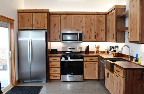 Built in 2025 on the scenic shores of Dry Lake, Jackson Duroc Cottages is your peaceful lakeside retreat, designed for a truly relaxing getaway. This 2-bedroom, 1-bathroom cottage comfortably accommodates up to six guests, with each bedroom featuring brand-new, luxurious mattresses, quality sheets, and pillows. Each bedroom sleeps three guests, offering a twin XL bunk bed and a single twin XL bed per room. For added convenience, you’ll find extra linens, towels, and pillows stored in the closets.