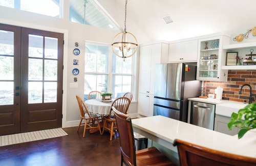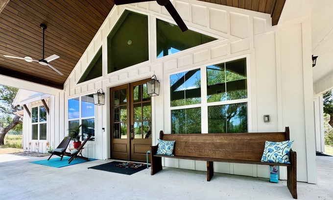 Welcome to Farm Charm Fun, your ideal wedding accommodation nestled in the heart of Dripping Springs, Texas. This newly constructed home combines Texas country charm with modern amenities, making it a perfect retreat for couples looking to celebrate their love. With its spacious, fenced yard and serene environment, you and your guests can enjoy an intimate setting that sets the stage for an unforgettable wedding experience.