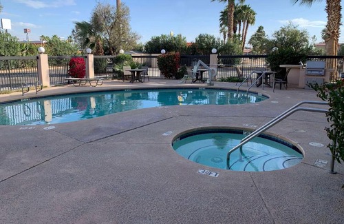 Days Inn by Wyndham Blythe has an outdoor swimming pool, garden, a shared lounge and restaurant in Blythe. This 4-star inn offers room service, a 24-hour front desk and free WiFi. The inn has a grill and a hot tub. All rooms come with air conditioning, a flat-screen TV with cable channels, a fridge, a coffee machine, a shower, free toiletries and a desk. At the inn, the rooms include a private bathroom with a hairdryer. Days Inn by Wyndham Blythe offers a buffet or continental breakfast. Yuma International Airport is 91 miles from the property.