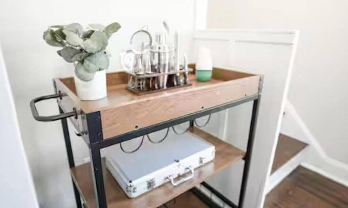 Walking through the living room you will enter the large dining area, which has a round table that will seat 4 comfortably. There is also a bar cart in the dining room for you to become the resident mixologist if you so desire.