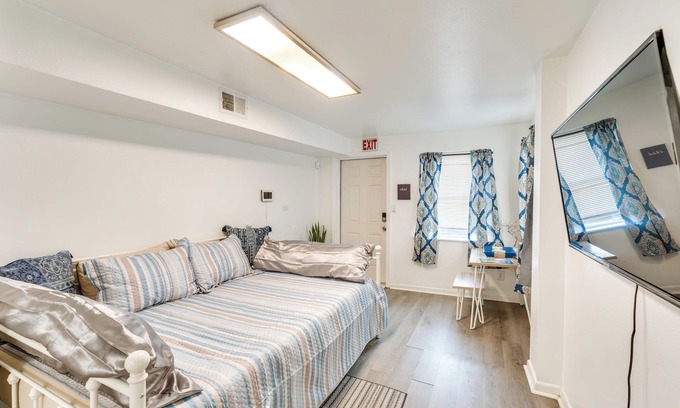 Daytona Beach Studio: Walk to Boardwalk + Pier! is located in Smith's Memento. Daytona Beach Studio: Walk to Boardwalk + Pier! provides accommodation, featuring Sports/Activities, Parking, Fireplace/Heating, among other amenities. This Apartment features Sports/Activities, Parking, Fireplace/Heating, to make your stay a comfortable one.