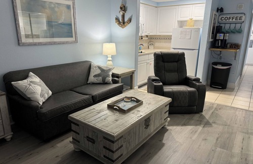 “A Room With a View”. This 3'rd floor oceanfront suite is located at the Daytona Beach Resort. The private balcony offers gorgeous views of the Atlantic Ocean. Enjoy a warm cup of coffee along with the beautiful sunrise. The Condo features a King bed, sofa, power recliner, and 50” smart HDTV. A full-sized dresser and two nightstands offer plenty of storage space for your belongings. Three elevators, guest coin-operated laundry and ice machine are also only a few steps from your door.