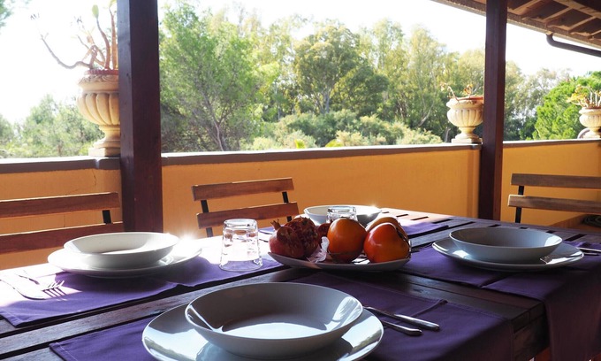 - Holiday apartment with independent entrance located on the first floor, equipped with a veranda equipped with table and chairs for outdoor dining. Inside it consists of kitchen / living room with sofa, a bedroom with double bed and a bedroom with 2 single beds side by side, bathroom with shower and tub.