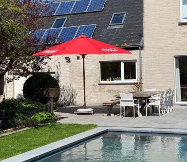 Offering a garden, De Lanterfanters Vakantiehuis Jef offers accommodations in Nieuwpoort. Guests may go for a swim in the private pool. There's an outdoor fireplace and guests have access to free Wifi, free private parking, and an electric vehicle charging station. Providing a terrace and garden views, the spacious vacation home includes 5 bedrooms, a living room, satellite flat-screen TV, an equipped kitchen, and 2 bathrooms with a walk-in shower and a bath. This vacation home also provides guests with a patio that doubles up as an outdoor dining area. For added privacy, the accommodation features a private entrance. Guests can eat at the on-site family-friendly restaurant, which is open for dinner, lunch, brunch, and cocktails. For guests with children, the vacation home provides an indoor play area, outdoor play equipment, and a baby safety gate. A bicycle rental service is available at De Lanterfanters Vakantiehuis Jef, while cycling and fishing can be enjoyed nearby. Plopsaland De Panne is 10 miles from the accommodation, while Dunkerque Train Station is 21 miles away. Ostend - Bruges International Airport is 11 miles from the property.