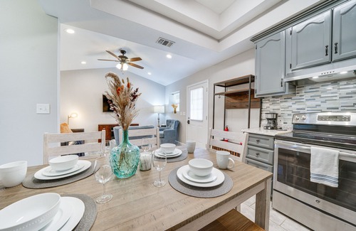 Retreat to southwest Arkansas with your loved ones and make this 2-bedroom, 1-bath De Queen vacation rental your next home away from home! This updated apartment features a cozy living area with a flat-screen TV, a well-equipped kitchen, and access to the area’s top outdoor recreation. Hunt throughout Daisy State Park, cast a line in the Cossatot River, or head to Oak Grove Swim Beach and make a splash in DeQueen Lake! At day’s end, unwind back home with your favorite nightcap on the deck.
