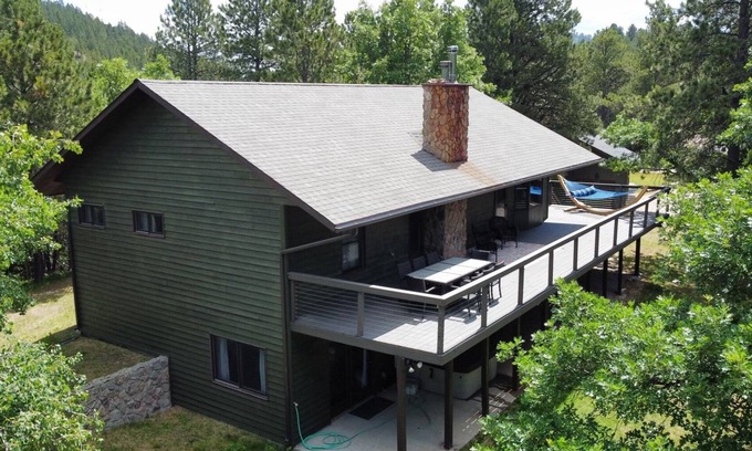 Welcome to Deadwood Pines Hideaway, your private oasis nestled in the breathtaking Black Hills. This sprawling vacation retreat is an ideal choice for couples seeking a picturesque setting for their wedding celebration. Surrounded by nature's beauty and tranquility, you can host your ceremony and reception in an enchanting atmosphere, all while being just five minutes away from the vibrant downtown Deadwood. Imagine saying "I do" with the whispering pines as your backdrop, creating memories that will last a lifetime.