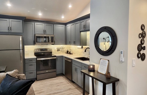 Welcome to our car-shop themed small home offering high style, high tech, and plush comfort. Newly built, freshly furnished, and stylishly decorated; with an open concept living-dining area and a dedicated work station. Lounge on our inviting, deep couch in front of a 75” smart tv + free wifi; or make a meal in our fully equipped kitchen that offers a cocktail making kit and an assortment of coffee/tea pods. We are a short walk from Old Town Auburn, yet only minutes from our beloved outdoors.
