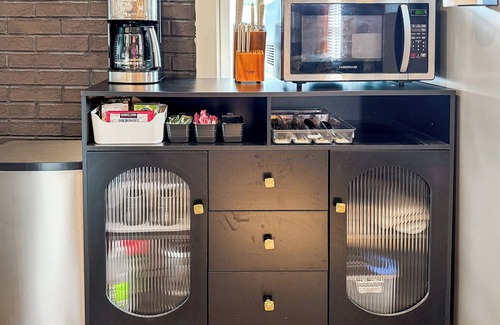 - Fully stocked kitchen + coffee bar