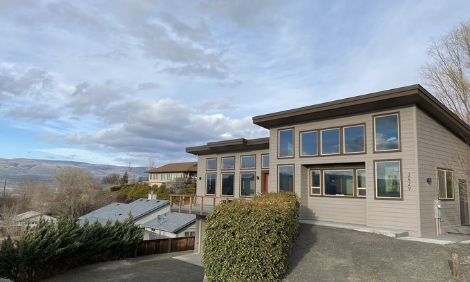 We welcome you to enjoy our newly built peaceful home overlooking the Columbia Gorge. The patio provides a beautiful daytime view of the Columbia Gorge and mountains as well as a twinkling nighttime view of the city. This slice of heaven is located in The Gorge near restaurants, breweries, hiking, fishing, rafting, and kiteboarding . 8 minutes to the marina if you would like to bring a boat. Please note that there is a steep driveway to get to our street.