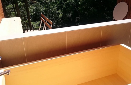 You can have the best time on the spacious wooden deck with a roof where you can BBQ and the openair bath made of cypress while relaxing and looking out at the forest