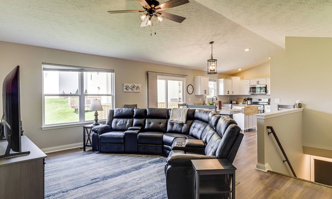 Embark on your next retreat at this 5-bedroom, 3-bath vacation rental in Dry Ridge. The spacious home comes with a barbecue-ready deck overlooking a large grassy yard and 2 living areas where your crew can unwind. Visit the Ark Encounter, go on a boating excursion at Williamstown Lake, or check out downtown Dry Ridge for fun antique shopping. Secure your stay today and get ready for relaxation in the Bluegrass State!