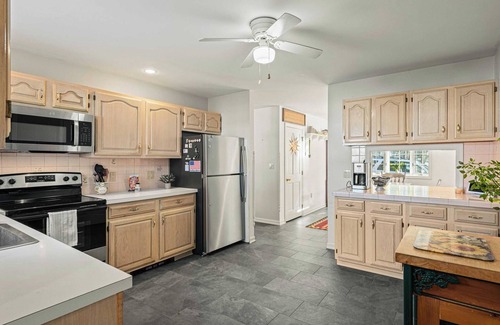 This 4-bedroom, 4-bathroom rental features a fireplace, air conditioning, a ceiling fan, and a desk. Enjoy the free WiFi and TV. Prepare a home-cooked meal in the kitchen, complete with an oven, a stovetop, and a refrigerator, as well as an ice maker, a microwave, and cookware. And you won't have to pack extra clothes, because you'll also have a washer/dryer.