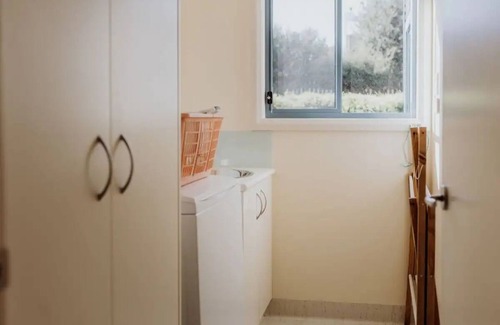 The house operates on a grey water system, reverse cycle hot water system, inbuilt composting unit in the sink, double glazed windows, insulated floors, walls and ceiling. The floor acts as a beautiful heat bank in the kitchen and living areas, and there is also a pellet heater for the cooler nights!