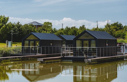Head down the pontoon and step aboard your patio deck and into the pod, where you will find a modern open-plan lounge and wall-mounted television. The kitchenette is equipped with a kettle, microwave, ceramic hob, and integrated electric oven. At the rear of the pod, is a modern double bedroom, shower room, and toilet. Bed linen, towels, and a hair dryer are all provided.