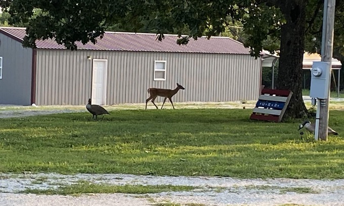 Nice setting with scattered trees, lots of wildlife to watch while you enjoy coffee. 1 bedroom with a full-size bed, 1 bath and large living room with a queen size hide-a-bed. There is even room for an air mattress too! There is a fire pit and grill to enjoy during your stay.
