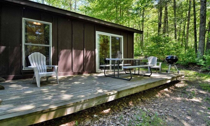 This cozy unit has 2 bedrooms, a full bath, a complete kitchen, a living room area, a deck with a charcoal grill, and a fire pit. There is a large-screen smart TV and a DVD player, but no local, satellite, or cable TV, bring along your favorite flicks for movie night or sign in to your favorite streaming channels.