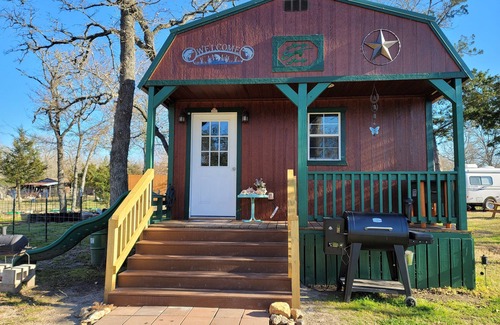 Our Deer Trail Cabin was designed to just have fun and relax. Its located inside Frank and Kev RV Park and only 1 1/2 miles from beautiful Lake Somerville. Sleeps up to 6 people. Made entirely out of wood with many custom built features, gives you the outdoor country feeling. Primary bedroom has a queen size bed. Upstairs loft has a queen size bed. The Living Room has a Sleeper Sofa, Large TV with Rustic Bench Table that can seat up to 6 people, Cabin also has Wi-Fi and a smart TV. Outdoor fire pit and Charcoal Grill.
