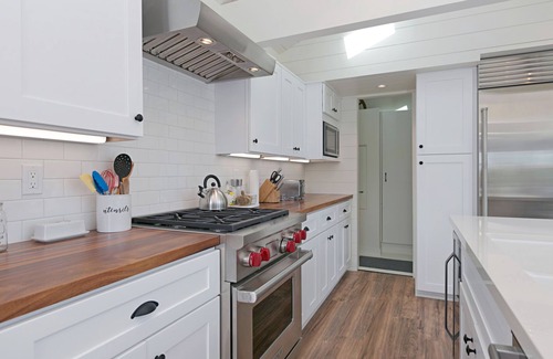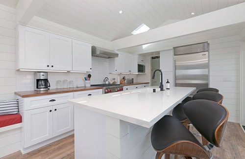 This beautifully designed beach house is located in Del Mar's most secluded and gated oceanfront community aptly named Sandy Lane. Originally designed by the award-winning architect Rob Wellington Quigley, the multi-level residence has a seamless blend of indoor and outdoor spaces. Its present-day owners recently remodeled the property with exceptional attention to detail. Its four bedrooms are individual cottages, each with a carefree coastal aesthetic: think whites, neutrals and pops of color art. You’ll enjoy the bright open spaces, the outdoor patios and the Zen-like flow as you make your way up to the living room and kitchen. Encased by glass, the sunlit entertaining space offers breathtaking ocean views, while the airy bright kitchen is a chef-friendly gem.